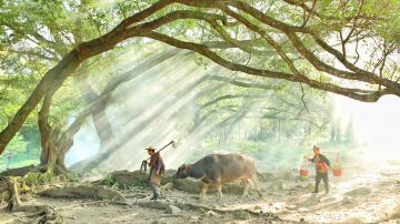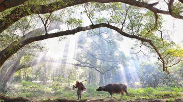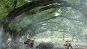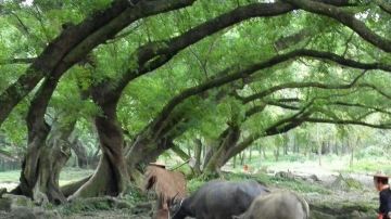 杨家溪位于霞浦县牙城镇境内。拥有纬度较北的古榕树群和江南较大的纯枫叶林。其中值得一提的是一株“榕树王”,它的树龄已有800多年,树干周长12.6米,冠幅直径51米,高30米,树干中空,有7个洞口,洞内可容数人。每当早晨的阳光斜斜地洒进树林,斑驳的树影在光影的晃动下展示着它的魔法,营造了一种如梦似幻的感觉。