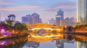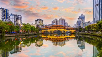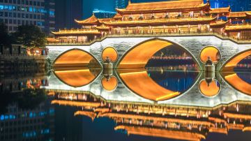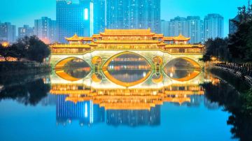 安顺廊桥,位于成都府河与南河交汇处的合江亭旁,这座桥有着悠久的历史,始建于元代,在马可·波罗的游记中,安顺廊桥是他印象中较为深刻的四座大桥之一。安顺廊桥曾经被洪水冲毁,2003年经过修复的安顺桥重新亮相。