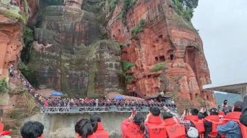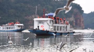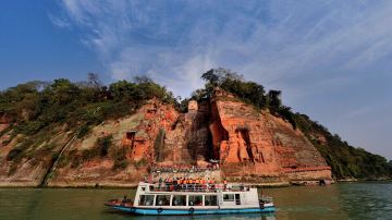 如果近距离欣赏大佛还觉得不够或者体力不太好的游客则可以选择坐船远观大佛。乘船荡漾在江面上,一览大佛的全貌,留下珍贵的照片,还可以欣赏岸边的风景。