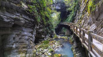 龙水峡地缝,由千万年前造山运动而形成,壁陡峡深,是典型的喀斯特地质奇观,在这里可以感受地下穿行的乐趣。地缝位于武隆县仙女山镇境内,与天坑景区(天生三桥)相距很近,可以同一天游玩。