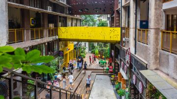 园区有两个广场、四条街巷、近十栋厂房,分布着艺术家工作室、设计室、博物馆、公共体验空间等,极具个性和风格。电影《从你的全世界路过》里面的电台,就是在这里31号楼天台取景拍摄的。站在天台,可将两江尽收眼底。