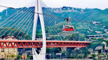 长江索道,已经成为了山城的代表性项目。索道起于渝中区长安寺(新华路),横跨长江至南岸区的上新街(龙门浩)。乘上索道,滑向江对岸,一路可见近在咫尺的钢筋森林、长江以及江北南岸区的风光。