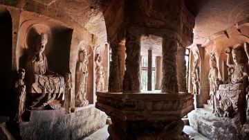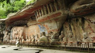 大足石刻,是重庆市大足区境内以佛教题材为主的摩岩石刻(石窟)的总称,包括宝顶山、北山、南山、石门山、石篆山等处,在这里可欣赏到保存较好的唐、宋时期的石刻造像艺术。迄今公布为文物保护单位的石刻多达75处,造像5万余尊。大足石刻造像始建于初唐,历经唐末、五代,兴盛于两宋,余绪绵延至明清,历时千余载,是中国石窟艺术史上的一座丰碑,也是世界石窟艺术中公元9世纪末至13世纪中叶间辉煌壮丽的一页。