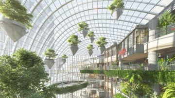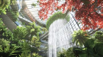 | “沐光森林”构建跨7层(B1层—L5层)、拥有高42米的立体垂直景观,引入近300种热带雨林植物,包含生命树、悬浮森林、花之瀑谷3大主题场景,以及12处互动打卡景点,共同建构了丰富的空间层次。 |