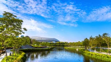 海心沙亚运公园改造于亚运会2010年广州开闭幕式主场馆,位于广州市天河区猎德大桥旁,总占地面积约17.6万平方米。