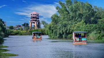 乘船可游览红树林、芦苇荡和鸟类天堂等湿地独特的生态景观。你可以看到成群的候鸟在水边栖息,沿湖红树拥翠,水道交错纵横,游船在河道中穿梭,间或有鸟儿掠水而飞。如果是夏天前往,还能看到莲花池盛开的大片荷花。