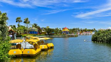 加勒比水公园位于冒险丛林区和海盗城堡区之间,上万平米的碧海银滩,先进的造浪技术,让你真切体验惊涛骇浪之感。在蔚蓝的海面上,设有儿童戏水区、水上竞技区、水上T台和泳池等多项水上游乐设施,游客们可以根据个人的喜好自由选择。尽情游玩之后,到椰风吧小憩一下,或小酌,或畅饮;品美酒,吹海风……如果晚上来到加勒比水公园,还可以欣赏到"海上升明月"的盛景,彻底享受快意人生的洒脱。