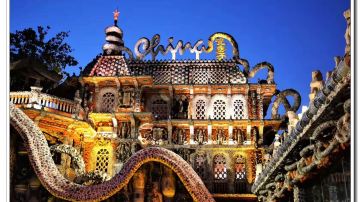 瓷房子是一座动用了无数私藏古瓷器、汉白玉石雕、水晶、玛瑙、古董装饰而成的法式建筑。房子的墙上密密麻麻贴满了精美的中国古代瓷器,庭院和楼内堆满了古董,铺天盖地的瓷器古董常让初到瓷房子的游客眼花缭乱。