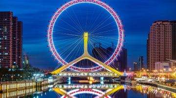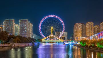 天津之眼是一座横跨在海河上的摩天轮,就像是桥上的一只眼睛,这里也是天津有名的标志之一,每到夜晚华灯初上时,天津之眼的彩灯柔美,无数游客会来到这里,拍摄全景或是乘坐观光,享受别样的浪漫。