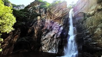 北京云蒙山风景区位于北京市密云区,距北京城区约80公里,是北京市著名的风景名胜区、国家森林公园和国家地质公园。于2000年被评为北京市风景名胜区,2009年被评定为国家森林公园,国家地质公园。云蒙山集泰山之雄,华山之险,黄山之奇,峨眉之秀于一体,素有北方小黄山之称。是一座以峰、石、潭、瀑、云、松取胜,以雄、险、奇、秀、幽、旷见长的名山,自然风景十分优美。“青空苍岭,朗耀金峰”连绵百里的北齐长城,明长城与密云水库交相辉映,是北京罕有的可以观山观水观长城,赏云赏瀑赏石松的京华胜境。