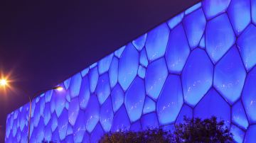 水立方(国家游泳中心)位于北京城区北侧,建筑非常奇特,外墙由3000多个不规则的气枕泡泡组成,远远望去像蓝色大海中的水分子。夜晚彩灯绚丽,更是拍夜景的好地方。
