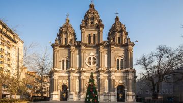 王府井天主堂是北京四大天主教堂之一。王府井天主堂是一座罗马建筑风格的教堂,是中西建筑风格共融的典范。虽然身处闹市,却丝毫没减少它圣洁的气质。节日期间有时不经意从王府井天主堂前走过,浑厚的电风琴声和唱诗班阳光般的歌声会从里面传出来,荡漾在冬日的空气中。