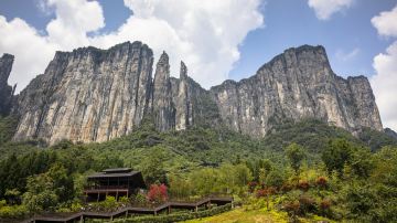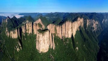 七星寨景区位于恩施市的东北部,距市区40公里,由云龙河地缝、大龙门、中龙门、小龙门及绝壁组成,景区主要包括地缝、绝壁、奇峰、峡谷等地质景观,是整个清江大断裂景观的精华。总面积23.9平方公里,喀斯特地址地貌在一般的情形下是有绝壁者无峰林,有峰林者无绝笔,而恩施大峡谷不仅兼而有之,且面积大,品位高,既有万丈悬崖凹陷于丛峰之中,也有四面绝壁突兀于丛峰之上,更有20多公里长的裂谷地缝,是典型独有的喀斯特地质地貌。