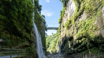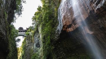 璧合桥,又名地心桥,建于2010 年的索道桥,从云龙地缝底部悬空联接两岸陡壁的栈道。使桥、栈道、绝壁融为一体,珠联璧合,故称璧合桥。