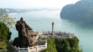 在西陵山顶面临大江处,有一柱形石峰,上有小平台,塑像立于江边一巨型石台上,这就是“张飞擂鼓台”。据说三国时期蜀汉猛将张飞曾在此台擂鼓督练兵士。张飞的塑像背依幽深峡谷,下临滚滚长江,环眼圆睁,虎须戟张,巨臂挥捶,似闻隆隆战鼓声。