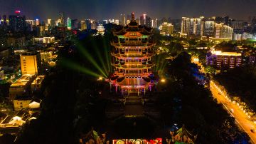 黄鹤楼光影秀,用灵动的灯光展现厚重的历史。
