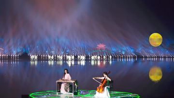 《印象西湖》是著名导演张艺谋、王潮歌、樊跃合力打造的“印象系列”之一,剧场位于西湖西北区的岳湖、曲院风荷与苏堤之间。以湖面作舞台,利用高科技声光技术渲染场景、由众多演员演绎情节,再现江南美景与民间传说。