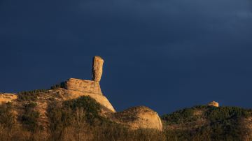 磬锤峰孤立于平缓的山峦之上,犹柱擎天,那上部略粗下部略细的自然造型很容易开启人的想象力,说它可与纳米比亚的“上帝的拇指”相媲美,那些不会生育的妇女踩着虔诚的步履,就为了到峰顶摸一摸它,感觉一下它的阳刚气息。