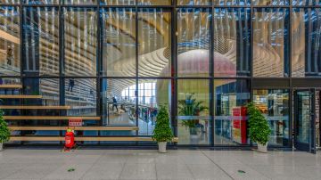 天津滨海图书馆外观非常有意思,站在不远处可以看到入口像一个椭圆形的开口,就像一只巨大的眼睛,所以也有人称这个图书馆为”滨海之眼“。