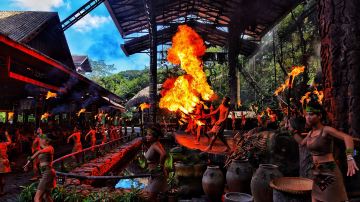海南槟榔谷黎苗文化旅游区创建于1998年,地处北纬18°,位于保亭县与三亚市交界的甘什岭自然保护区境内。景区坐落在万余棵亭亭玉立、婀娜多姿的槟榔林海,并置身于古木参天、藤蔓交织的热带雨林中,规划面积5000余亩,距亚龙湾海岸26公里,距三亚市中心28公里。 槟榔谷因其两边森林层峦叠嶂,中间是一条延绵数公里的槟榔谷地而得名。景区由非遗村、甘什黎村、谷银苗家、田野黎家、《槟榔·古韵》大型实景演出、兰花小木屋、黎苗风味美食街七大文化体验区构成,风景秀丽。景区内还展示了十项国家级非物质文化遗产,其中“黎族传统纺染织绣技艺”被联合国教科文组织列入非物质文化遗产急需保护名录。槟榔谷还是海南黎、苗族传统“三月三”及“七夕嬉水节”的主要活动举办地之一,文化魅力十足,是海南民族文化的“活化石”。