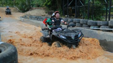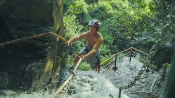 茂密的原始雨林,高山耸立,云雾弥漫,飞跃雨林项目将带你领略如飞鼠穿行雨林之巅的奇妙感受,滑索、攀岩、梅花桩、单车骑行等13项高空挑战项目,让你在丛林冒险间挑战自我,觅得一乐。