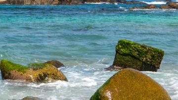 风平浪静之时,乘快艇环岛游,石景千奇百怪,观日岩像一尊天然大石佛,面向大海,日夜修炼。观日岩又像一只巨龟缓缓爬向大海,期望回到自己的故乡,故又称金龟探海。新世纪的第一缕曙光从这里升起,绯红的太阳从海面上徐徐上升,形成一海上观日点。每逢风起,激浪拍石,这一带浪峰高高达十几米。浪峰过后,海面上一片雪白的浪花,那才叫“卷起千堆雪”呢。