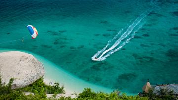 被三亚湾环抱着的西岛,湛蓝萦绕、水阔潮平,是开展海上运动的天堂;在这里可以尽情体验海上速度与激情的较量,将自己置身在蔚蓝的大海中,感受动感刺激的独特魅力,尽情享受纵身海洋的欢乐时光。帆船、拖曳伞、水上飞龙、摩托艇、香蕉船、飞鱼船、动感快艇等20多项海上运动任你选择~