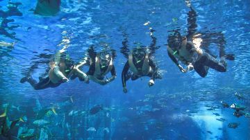 从近乎垂直的滑道上极速滑落,曲线穿过鲨鱼池隧道,不经意睁开眼睛会看到鲨鱼、鳐鱼在您身边恣意游戈,让惊魂未定的您立刻又经历一次勇气挑战。