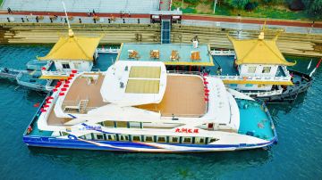 乘坐湘江游轮可游览湘江黄金游道,不但可以把长沙的山、水、洲、城一览无余,还可以随着船行方向的转变欣赏到由出不同风格的城市景观所搭配出来的不同效果,更加可以在画中览画,景中赏景,身临其境,指点江山。