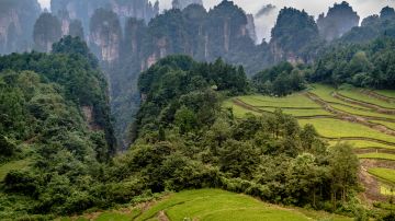 天门山国家森林公园因自然奇观“天门洞”而得名。游览景区时,须乘坐长达约7500米的索道,你可以在缆车中俯瞰脚下盘旋在峭壁之间的通天大道和山中美景。胆大的还可以走一走贴壁悬空的玻璃栈道,体验凌空行走的刺激。