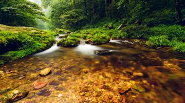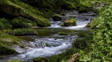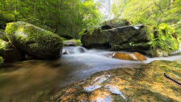 峡谷被称为“山水的画廊”,谷内满目青翠,有四季清澈的小溪,小溪旁树木葱葱、花草鲜美,阳光透过林间枝叶的间隙,在水面洒落下斑驳的影子,沿着小溪前行,胜似在画中游。这里还是经典版《西游记》的取景地之一。