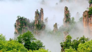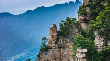袁家界是电影《阿凡达》中“哈利路亚山”的取景地,你可以在这里探寻电影中群山漂浮、星罗棋布的魔幻世界。如果碰巧山中下起了小雨,或是等到雨后初晴,更能欣赏到雾气弥漫、群峰叠嶂的美景。迷魂台是理想的观景位置,站在台上,四周有上百座石峰矗立,气势磅礴。这里还能看到横跨于两山之间,垂直高差357米的天下第一桥。