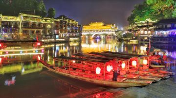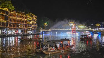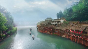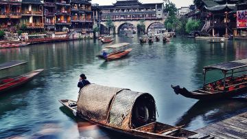 沱江是凤凰县境内的河流,而对于游客来说,沱江就是凤凰古城城墙边的那段河段。游览沱江常见的方式就是“沱江泛舟”,从靠近北门的码头上船,顺流而下,一直到东门外虹桥附近,全程约20分钟左右,途中还能听到船工的号子声和民歌对唱。