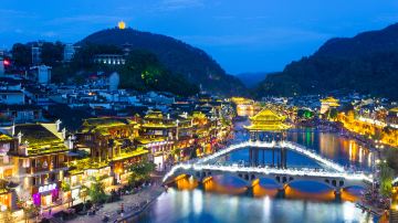 古城依山傍水,沱江穿城而过,红色砂岩砌成的城墙伫立在岸边,南华山衬着清朝年间的城楼。古城里北城门下的河面上,横着一条窄窄的木桥,以石为墩,是当年出城的通道。城内的青石板街道、沱江边的吊脚楼、众多的古建筑以及浓厚的风情,构成了独具一格的湘西韵味,主要景点有沈从文故居、古城博物馆、崇德堂等,值得游览。