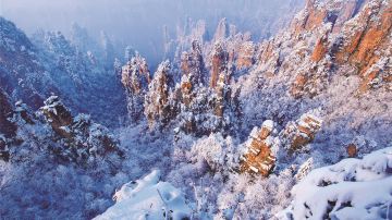 游览天子山,你将看到御笔峰、仙女献花、点将台、空中田园、仙人桥等各种造型奇异的地质景观和奇形山峰。不必太在意这些自然造型的像与不像,因为“原始风光自然美”,才是天子山的迷人之处。特别是在雨过初晴之后的朦胧大雾中,仿佛置身于仙境中。等到入冬山中银装素裹,景色更为迷人。