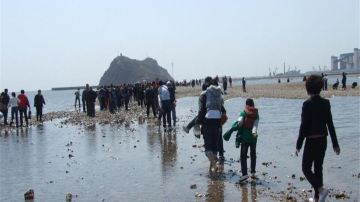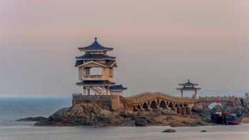 海滩的北部是游船码头,这里可以乘船去菊花岛,约40分钟船程。海滩南端有名胜景观“三礁揽胜”,在三座盘踞海中的礁石上,各建有一座造型幽雅的观海亭——水上长亭,各亭之间有栈桥相连,可登亭观潮听浪,或者早晨来看日出,也有人在此静心垂钓,十分惬意。如果赶上落潮,里侧的海水退却后海滩半隐半露,还可拾贝、捉蟹,乐趣横生。