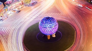 当夜幕降临时,水晶球内部发出的灯光效果变幻迷人,是拍照留念的好地方。