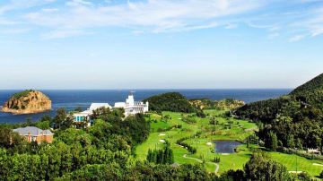 在景区内还会看到棒棰岛国宾馆大楼和数栋别墅,以及高尔夫球场,有的楼前还有武警战士值岗。