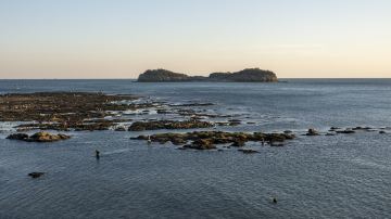 这片海滩不算很大,但海水非常清澈,在这里散散步、晒晒太阳,或在滩上拾贝壳和鹅卵石,很是惬意。但不同于南方的沙滩,这里海滩的沙比较粗糙,还夹杂着很多石头和贝壳碎片,赤脚行走会有些硌脚,夏天来游泳也需注意水里的海沟,不要游得太远。