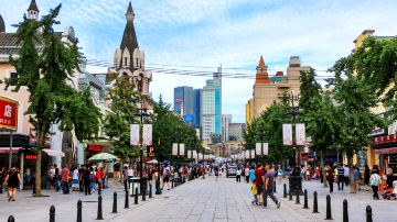 俄罗斯风情街不到五百米长,两侧的俄式建筑比较密集,如今这些建筑多为连锁酒店以及俄罗斯套娃、望远镜、俄罗斯香烟之类的小商店占用,但由于经过市委的统一修缮,来这里走走还是可以感受到些许异域风情的。