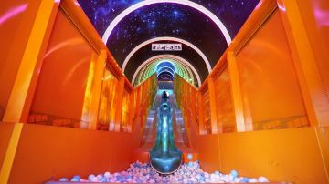 进门的右手边是“疯狂小镇”主题区,这里有很多游艺设施。2017年开放的FEC酷乐mini 世界是专为小朋友们量身打造的专属畅玩区域。不仅有三十余项亲子互动设备,还能在里面学习到各类社会技能,体验AR、VR科技。