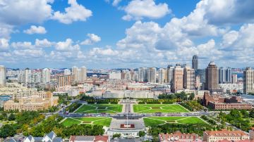 人民广场坐落于大连市政府对面,是大连的城市地标之一。广场上拥有大型草坪,也设有升旗台和喷泉,不仅早晚可以观看升旗和降旗仪式,还有漂亮的音乐喷泉可供欣赏,如果运气够好,还能看到英姿飒爽的女骑警。