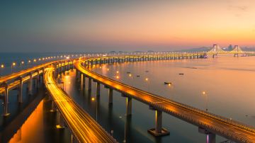 大连南部滨海大道跨海大桥,即为大连星海湾跨海大桥。为中国首座海上地锚式悬索跨海大桥。全桥采用了"单元式多向变位伸缩装置"。中段的跨海大桥的南北两侧将设有人行道,而且将与车行道隔离;同时由于大桥为上下两层,两层将有钢扶梯,方便桥梁检修及人员通过。