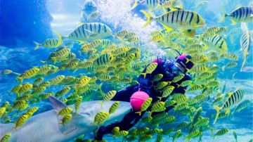 而海洋剧场里的真人水下表演更是备受欢迎,可欣赏惊险的“人鲨共舞”、唯美梦幻的“美人鱼”表演,有时还能看到由潜水员在水下上演的幽默小品。