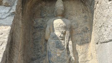 奉先寺是龙门石窟中颇具代表性的摩崖像龛,而奉先寺中的卢舍那大佛更是精华中的精华,凡是到过龙门石窟的人,都会被卢舍那大佛的庄严博大所震撼。这尊大佛造型丰满,神态端庄安详,仔细查看,还会发现佛像带着一丝微笑,显得慈祥谦和,因此也被人誉为“东方的蒙娜丽莎”。有个传说,卢舍那大佛是依照唐朝女皇武则天的相貌雕刻的。