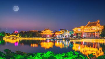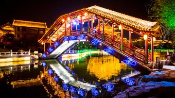 看完演出夜幕已经降临,景区内的亮化工程将会开启,走在路上到处都悬挂着大红灯笼,浮光掠影,熙熙攘攘的市井街道灯火通明,散发着与白天不同的魅力。此时,登上园内的上善门,可以将整座开封城的夜景尽收眼底。