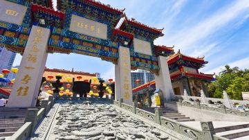 黄大仙祠除主殿大雄宝殿外、还设有小园林、三圣堂、从心苑,建筑雄伟金碧辉煌,祠内的九龙壁仿照北京故宫九龙壁而建。