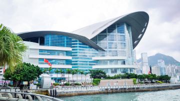 香港会议展览中心位于湾仔填海建造的金紫荆广场上,坐瞰美丽的维多利亚港,每年都会举办种类丰富的展览。这个庞大的建筑外形颇具流线型,彷如一只正欲振翅高飞的海鸟,面向维港的大块玻璃幕墙充满现代感。