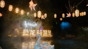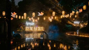 恐龙谷温泉是一处大型主题、园林坐观式生态温泉群。包括龙池、休闲、情侣浪漫和雀巢密林等五大汤池,由红酒池、花瓣池、漩涡池、亲亲鱼池、儿童池等近四十个露天泡池组成,主题龙池可同时容纳百人。园内花树密蔽、清芳凝露、亭廊贯通,恍如世外桃源,营造都市森林和温泉密境。