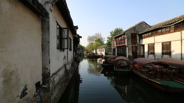 周庄古镇面积不大,长宽大约都在一到两公里,步行就可以游玩整个古镇。不过乘船泛舟在水路之上是非常建议体验的,古镇内的船是遮着蓝印花布的木船,一次可乘坐六人,划船的阿姨经常会唱些昆曲小调,很有水乡韵味。